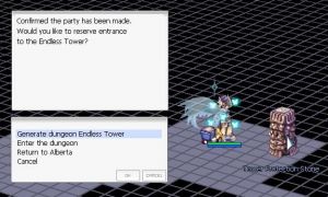 The Endless Tower is an increasingly difficult set of challenges. Participating parties make their way up the 100 floor tower, with a special boss encounter against Entweihen Knothen on the 100th floor, and Naght Sieger afterwards. These battles function similar to the Izlude Arena, with players being required to defeat all monsters on a particular floor before the door to the next can open. Once on a floor, players are unable to go backwards; thus the only ways to leave the tower are to die and respawn, leave the Party, log out, use a Butterfly Wing, or walk into a Warp Portal.