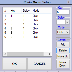 • To set, as you can see. there you have Key, Delay, Mode, Add/delete/move up/move down